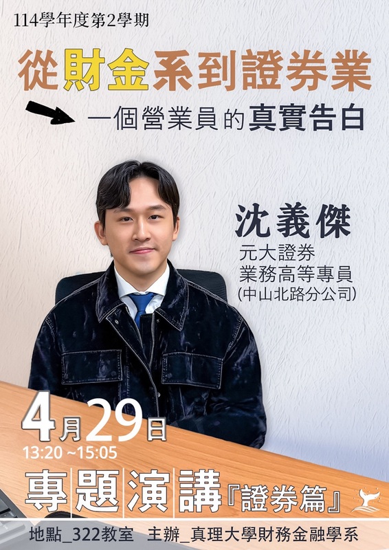 114學年度第二學期真理大學財務金融學系「專題演講-證券篇」
