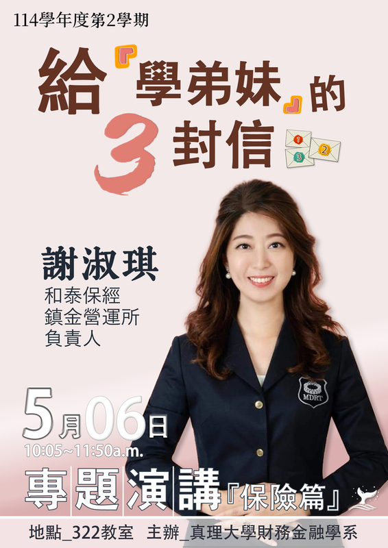114學年度第二學期真理大學財務金融學系「專題演講-保險篇」